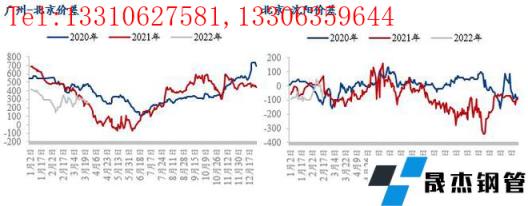 目前北京價格居于低位,不過從南北價差的歷史數據來看,廣州-北京價差不足300元/噸,也屬于偏低水平;雖然目前東北區域價格略高于北京,但是東北區域受疫情影響較大,汽運運輸受阻,資源消化艱難,其中沈陽建筑厚壁無縫鋼管市場庫存量已經創出有調研數據以來的峰值,市場有一定的庫存壓力,因此在華南價格優勢不大,又在緩解東北區域壓力的前提下,北京以及京津冀其他區域仍是東北區域無縫厚壁鋼管廠家(凌鋼、新撫鋼等)資源輸送的主要區域。