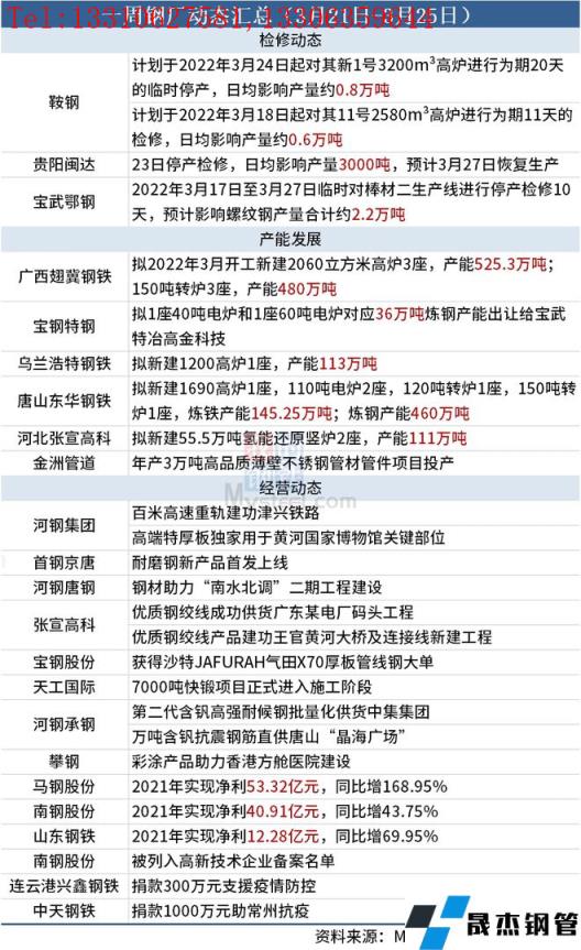 據不完全統計,本周(3月21日-3月25日)有3家無縫厚壁鋼管廠家發布檢修動態,具體如下:
