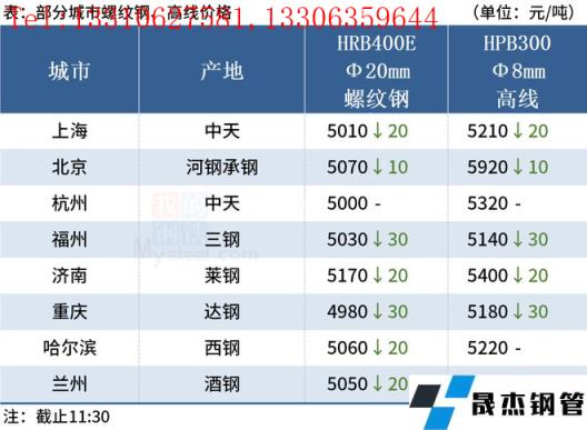 ◎上海:7日早盤建材市場價格下跌10-20?,F螺紋4940-4980,西城抗震4980,其他4800-4850,興鑫抗震4860,聯鑫黃??拐?870,盤螺5100-5220,高線亞新5030。(單位:元/噸)