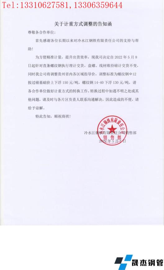 免責(zé)聲明:本網(wǎng)站(山東聊城晟杰無縫鋼管廠www.subnucleon.com)刊載的“冷水江鋼鐵有限責(zé)任公司關(guān)于對貴州區(qū)域計重方式調(diào)整的告知函”等均源于網(wǎng)絡(luò),版權(quán)歸原作者所有,且僅代表原作者觀點,本文所載信息僅供參考。轉(zhuǎn)載僅為學(xué)習(xí)與交流之目的,如無意中侵犯您的合法權(quán)益,請及時聯(lián)系刪除。本網(wǎng)站刊登此篇文章并不意味著本站贊同其觀點或證實其內(nèi)容的真實性,我們不對其科學(xué)性、嚴肅性等作任何形式的保證。如果侵犯了您的版權(quán),請盡快聯(lián)系我們予以撤銷,謝謝合作!