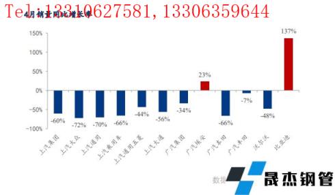 我們再看下汽車生產企業的銷量數據統計,近期部分汽車生產企業發布了汽車品牌的銷售數據,多家汽車品牌的銷量在4月份嚴重下滑,其中上汽集團同比下滑超過60%,旗下上汽大眾、上汽通用等品牌同比下滑超過70%。唯獨比亞迪品牌在4月份銷量同比實現正增長,增幅更是達到了137%。