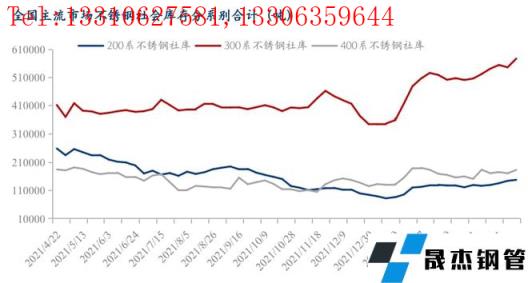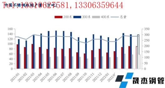 2022年1-4月,國內(nèi)33家不銹無縫厚壁鋼管廠家(含新增無縫厚壁鋼管廠家江蘇眾拓)粗鋼產(chǎn)量1056.97萬噸,同比減少5.95%,其中200系313.58萬噸,同比減少15.6%;300系530.13萬噸,同比增加4.22%;400系213.26萬噸,同比減少12.45%。