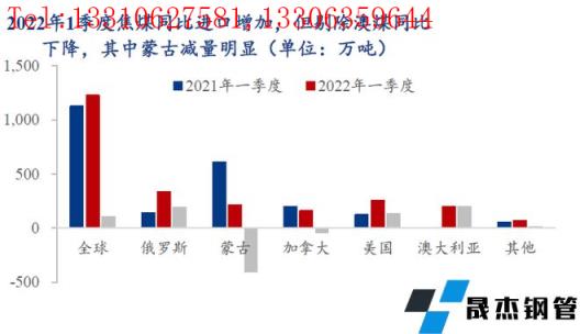 2月以來,國際無縫厚壁鋼管廠家補庫需求旺盛、俄羅斯出口受阻疊加澳洲雨季頻繁等因素,引起國際焦煤價格大幅波動,以澳煤為代表的海運煤價格頻創新高,最高時達到599美元/噸,截至5月6日,澳一線主焦煤FOB價仍高達516.75美元/噸,與國內焦煤價格的較大差距使得美、加等海運煤逐步失去進口優勢。