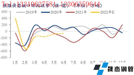 在地緣政治沖突等因素的影響下,國際焦煤供需格局偏緊,全球煤價整體走強,制約我國焦煤進口。2022年1月下旬至4月下旬,不斷沖擊年內新高的鐵水疊加進口減量,焦煤四部門(港口+煤礦+焦企+無縫厚壁鋼管廠家)庫存連續12周降庫。剔除澳煤通關量,焦煤進口一季度同比下滑約百萬噸。而近期不斷傳出有進口增量消息的蒙煤則備受市場期待,我們認為在今年粗鋼產量限產的背景下,鐵水產量有望逐步見頂,焦煤即將擺脫需求最好供應最差的時期。由此,在焦煤利潤高位,厚壁無縫鋼管利潤受制及供需缺口環比減少的情況下,焦煤價格存在階段性高位回調風險。