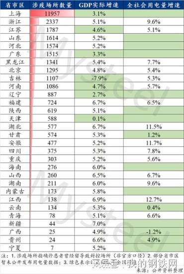 表1.截至5月7日全國省份涉疫場所數(shù)量與一季度GDP、用電量增速排名