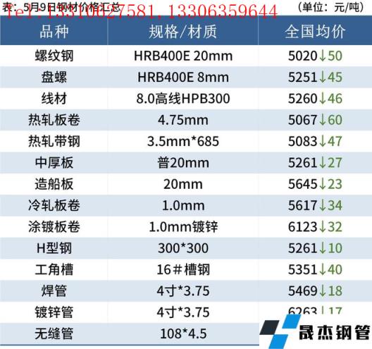 建筑厚壁無縫鋼管:5月9日,全國31個(gè)主要城市20mm三級(jí)抗震螺紋鋼均價(jià)5022元/噸,較上個(gè)交易日下跌50元/噸。短期來看,近期市場(chǎng)心態(tài)偏悲觀,同時(shí)華東、華南即將迎來新一輪汛期,現(xiàn)貨銷售壓力加大。因此在缺乏有效強(qiáng)需求支撐下,預(yù)計(jì)10日建筑厚壁無縫鋼管價(jià)格或?qū)⒄踹\(yùn)行。