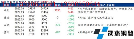 4月西南地區(qū)建筑厚壁無縫鋼管價(jià)格區(qū)間震蕩運(yùn)行,整體均價(jià)小幅抬升,部分無縫厚壁鋼管廠家利潤小幅提升。其中云貴區(qū)域由于建材價(jià)格相對偏低,廢鋼價(jià)格較高,大多無縫厚壁鋼管廠家仍處于虧損狀態(tài),停產(chǎn)檢修情況較多。具體來看,4月四川地區(qū)電弧爐無縫厚壁鋼管廠家日均產(chǎn)量小幅增加,重慶地區(qū)電弧爐無縫厚壁鋼管廠家生產(chǎn)無明顯變化,云貴地區(qū)電弧爐無縫厚壁鋼管廠家產(chǎn)量小幅下降。