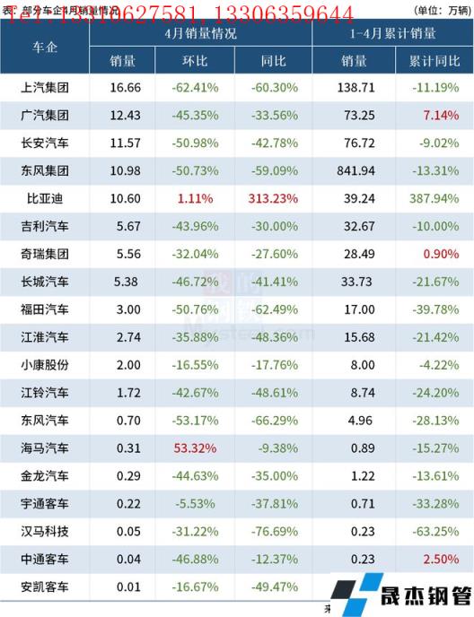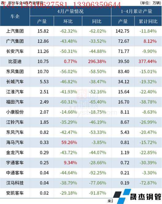 免責聲明:本網站(山東聊城晟杰無縫鋼管廠www.subnucleon.com)刊載的“4月19家車企銷量出爐,超九成同比大降”等均源于網絡,版權歸原作者所有,且僅代表原作者觀點,本文所載信息僅供參考。轉載僅為學習與交流之目的,如無意中侵犯您的合法權益,請及時聯系刪除。本網站刊登此篇文章并不意味著本站贊同其觀點或證實其內容的真實性,我們不對其科學性、嚴肅性等作任何形式的保證。如果侵犯了您的版權,請盡快聯系我們予以撤銷,謝謝合作!