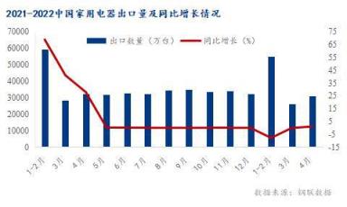 從統(tǒng)計(jì)局公布的最新數(shù)據(jù)看,2022年一季度中國(guó)家用電器累計(jì)出口金額29387百萬(wàn)美元,同比下降5.3%。其中4月中國(guó)家用電器出口金額7860.0百萬(wàn)美元,同比下降0.1%。
