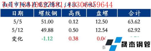 分品種來看,以南昌市場(chǎng)為例,本周南昌市場(chǎng)建筑厚壁無縫鋼管總庫存為62.92萬噸,其中螺紋鋼庫存為49.88萬噸,周環(huán)比減少1.12萬噸,降幅為2.20%;高線庫存為0.50萬噸,周環(huán)比增加0.38萬噸,增幅為300.40%;盤螺庫存為12.54萬噸,周環(huán)比增加0.04噸,增幅為0.35%。從資源占比來看,螺紋鋼資源占比79.27%,線盤資源占比20.73%,螺紋鋼占比小幅減少,據(jù)了解,主要是由于近期線材利潤偏高,故無縫厚壁鋼管廠家最近開始增加線材的產(chǎn)量。