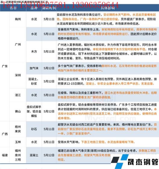 今年以來最強(qiáng)降雨過程已經(jīng)在華南拉開帷幕。據(jù)氣象水文部門預(yù)測,5月9日至13日江南南部和華南地區(qū)將迎來入汛以來最強(qiáng)降雨過程,本輪強(qiáng)降雨覆蓋范圍廣、持續(xù)時(shí)間長、累計(jì)雨量大、局地雨勢(shì)猛,廣東、廣西、福建、重慶、四川、貴州、云南省(自治區(qū)、直轄市)等多地啟動(dòng)防汛Ⅳ級(jí)應(yīng)急響應(yīng),部分強(qiáng)降雨天氣影響下多地施工進(jìn)度受損,運(yùn)輸和終端施工進(jìn)度受限,建筑材料市場行情弱勢(shì)運(yùn)行。