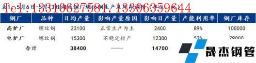 調研數據顯示,統計的湖北地區15家建筑厚壁無縫鋼管樣本無縫厚壁鋼管廠家中,本周2家無縫厚壁鋼管廠家螺紋鋼產線維停產狀態,其余無縫厚壁鋼管廠家以不飽和生產居多;線盤產線部分縮短排產時間,主要是電弧爐企業生產處于虧損狀態,產量小幅下降。廠庫方面,隨著本周價格弱勢震蕩運行,無縫厚壁鋼管廠家出貨節奏放緩,廠內建材庫存總量有所增加,總體庫存壓力較小。本周具體螺紋鋼及盤螺產量及庫存數據如下: