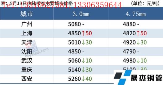 熱軋板卷:5月13日,全國24個主要城市4.75mm熱軋板卷均價5021元/噸,較上個交易日下跌14元/噸。現貨市場觀望情緒較濃,早盤漲跌互現,隨著午盤期貨走強,貿易商挺價情緒尚可,但成交并沒有好轉。目前從供需面來看,熱卷基本面依舊偏差,昨日本網熱軋板卷數據發布,產量、社庫增加,廠庫下降,表需稍有回升。需求方面由于近期期貨盤面反彈,數據有所回升,前期部分延遲需求逐步釋放,商家壓力有所減輕。綜合來看,預計近期全國熱軋板卷價格區間震蕩運行。