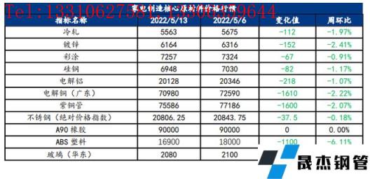 免責聲明:本網站(山東聊城晟杰無縫鋼管廠www.subnucleon.com)刊載的“家電原材料周報(5.9-5.13)”等均源于網絡,版權歸原作者所有,且僅代表原作者觀點,本文所載信息僅供參考。轉載僅為學習與交流之目的,如無意中侵犯您的合法權益,請及時聯系刪除。本網站刊登此篇文章并不意味著本站贊同其觀點或證實其內容的真實性,我們不對其科學性、嚴肅性等作任何形式的保證。如果侵犯了您的版權,請盡快聯系我們予以撤銷,謝謝合作!