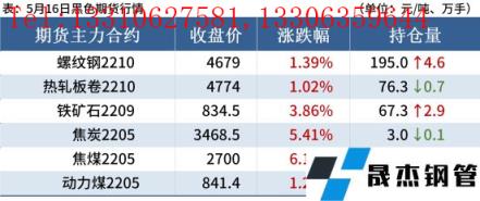 焦炭:5月16日,焦炭市場偏弱運行,焦炭市場二輪降價落地,累計降幅為400元/噸。產地焦企開工正常,生產良好,當前焦企仍有盈利即產即銷,出貨順暢。無縫厚壁鋼管廠家方面,無縫厚壁鋼管廠家焦炭庫存呈現增勢,現大多控制到貨節奏,按需采購焦炭,考慮到無縫厚壁鋼管廠家成品出貨壓力較大且原料成本依然偏高,繼續打壓焦價意愿強烈。原料煤價格繼續回落,成本支撐較弱,預計短期內焦炭市場偏弱運行。