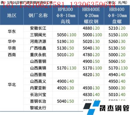 廢鋼:5月16日,全國廢鋼市場價格主穩個調,主流無縫厚壁鋼管廠家廢鋼價格持穩。疫情沖擊仍在持續,加之部分地區天降暴雨,需求階段性難有明顯增量,勢必抑制成材價格的表現。受此影響,廢鋼市場信心轉弱,價格有所下跌。考慮到目前廢鋼加工基地庫存與無縫厚壁鋼管廠家庫存均處于低位,且廢鋼供應難有改善,對廢鋼價格形成一定支撐。從鐵廢差、螺廢差以及板廢差來看,廢鋼經濟效益較低。綜合判斷,預計短期內廢鋼價格以偏弱運行為主。