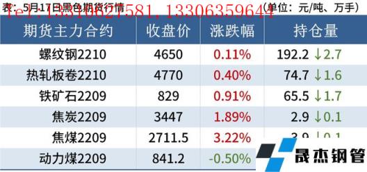 廢鋼:5月17日,主流無縫厚壁鋼管廠家廢鋼價格持穩。考慮到目前廢鋼加工基地庫存與無縫厚壁鋼管廠家庫存均處于低位,且廢鋼供應難有改善,對廢鋼價格形成一定支撐。當前疫情影響疊加天氣因素使得下游厚壁無縫鋼管需求難以釋放,由于成材庫存累庫,多數無縫厚壁鋼管廠家存在減產情況。鋼價或在區間震蕩運行,短期來看廢鋼價格仍以震蕩偏弱運行為主。
