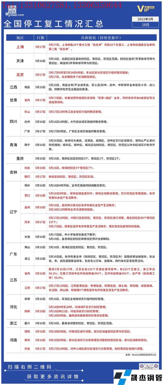 免責聲明:本網站(山東聊城晟杰無縫鋼管廠www.subnucleon.com)刊載的“疫情影響丨全國停工復工情況匯總(5月18日)”等均源于網絡,版權歸原作者所有,且僅代表原作者觀點,本文所載信息僅供參考。轉載僅為學習與交流之目的,如無意中侵犯您的合法權益,請及時聯系刪除。本網站刊登此篇文章并不意味著本站贊同其觀點或證實其內容的真實性,我們不對其科學性、嚴肅性等作任何形式的保證。如果侵犯了您的版權,請盡快聯系我們予以撤銷,謝謝合作!