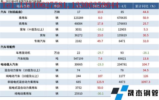免責聲明:本網站(山東聊城晟杰無縫鋼管廠www.subnucleon.com)刊載的“海關總署:4月中國出口汽車17萬輛,同比增長10.6%”等均源于網絡,版權歸原作者所有,且僅代表原作者觀點,本文所載信息僅供參考。轉載僅為學習與交流之目的,如無意中侵犯您的合法權益,請及時聯系刪除。本網站刊登此篇文章并不意味著本站贊同其觀點或證實其內容的真實性,我們不對其科學性、嚴肅性等作任何形式的保證。如果侵犯了您的版權,請盡快聯系我們予以撤銷,謝謝合作!