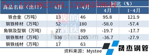 免責聲明:本網站(山東聊城晟杰無縫鋼管廠www.subnucleon.com)刊載的“海關總署:4月中國出口板材336萬噸,同比降36.7%”等均源于網絡,版權歸原作者所有,且僅代表原作者觀點,本文所載信息僅供參考。轉載僅為學習與交流之目的,如無意中侵犯您的合法權益,請及時聯系刪除。本網站刊登此篇文章并不意味著本站贊同其觀點或證實其內容的真實性,我們不對其科學性、嚴肅性等作任何形式的保證。如果侵犯了您的版權,請盡快聯系我們予以撤銷,謝謝合作!