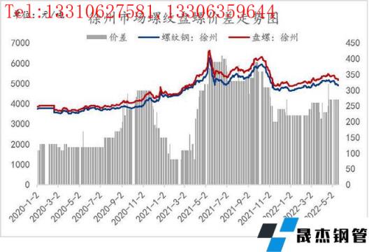 2、從目前省內(nèi)部分無縫厚壁鋼管廠家生產(chǎn)情況來看,考慮到盤螺利潤(rùn)明顯好于螺紋、優(yōu)線,部分無縫厚壁鋼管廠家進(jìn)而進(jìn)行產(chǎn)線調(diào)劑,具體產(chǎn)線由生產(chǎn)優(yōu)線轉(zhuǎn)換為生產(chǎn)盤螺,同時(shí)由于目前無縫厚壁鋼管廠家利潤(rùn)整體偏低,且螺紋銷售壓力仍存,鐵水或存分配轉(zhuǎn)產(chǎn)情況,由螺紋流向盤螺,近期市場(chǎng)對(duì)于盤螺的需求仍呈現(xiàn)上升態(tài)勢(shì),存量需求隨著疫情的逐漸轉(zhuǎn)好也將持續(xù)釋放,預(yù)計(jì)省內(nèi)螺紋盤螺價(jià)差將繼續(xù)呈現(xiàn)擴(kuò)大的態(tài)勢(shì)。