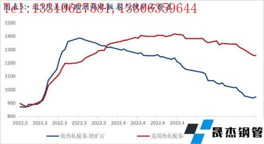 雖然4月上旬全球成品鋼價格延續上漲,致使北美、歐洲、土耳其等主要產鋼國日均產量小幅上漲(3-5%),但4月下旬成品鋼跌幅明顯大于原材料尤其是鐵礦石下跌幅度。表5為近三月美國和歐洲熱卷價格與鐵礦石價差,該價差僅取主流價格且未經嚴格計算不代表生產成本,僅作利潤變化的趨勢參考。可見歐洲熱軋板卷與鐵礦石價差在3月中下旬達到高點后,在整個4、5月份連續下降,相比之下該價差在美國的降幅相對較小。