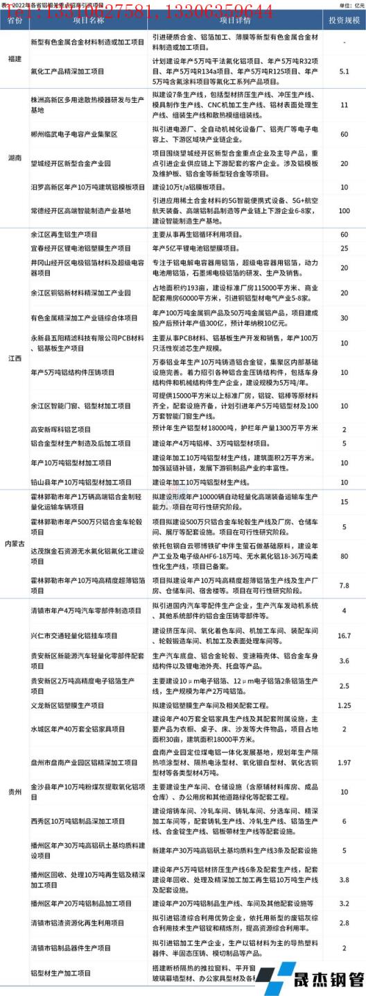 免責聲明:本網站(山東聊城晟杰無縫鋼管廠www.subnucleon.com)刊載的“5省2022年鋁相關重點招商項目清單出爐”等均源于網絡,版權歸原作者所有,且僅代表原作者觀點,本文所載信息僅供參考。轉載僅為學習與交流之目的,如無意中侵犯您的合法權益,請及時聯系刪除。本網站刊登此篇文章并不意味著本站贊同其觀點或證實其內容的真實性,我們不對其科學性、嚴肅性等作任何形式的保證。如果侵犯了您的版權,請盡快聯系我們予以撤銷,謝謝合作!