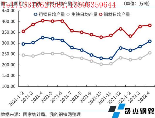 一、4月份全國粗鋼日均產(chǎn)量309.27萬噸,環(huán)比增長8.6%