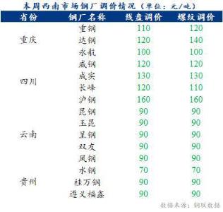 本周西南無縫厚壁鋼管廠家建材總庫存149.91萬噸,環(huán)比增加4.71萬噸。具體來看,四川區(qū)域廠庫74.15萬噸,環(huán)比增加7.07萬噸;重慶區(qū)域廠庫10.6萬噸,環(huán)比增加0.9萬噸;云南區(qū)域廠庫59.66萬噸,環(huán)比減少1.76萬噸;貴州區(qū)域廠庫5.5萬噸,環(huán)比減少1.5萬噸。