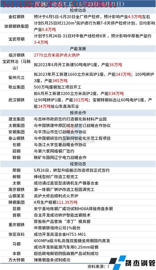 據(jù)不完全統(tǒng)計(jì),本周(5月23日-5月27日)有3家無(wú)縫厚壁鋼管廠家發(fā)布檢修計(jì)劃,具體如下: