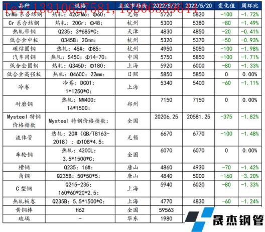 免責聲明:本網站(山東聊城晟杰無縫鋼管廠www.subnucleon.com)刊載的“工程機械原材料周報(5.23-5.27)”等均源于網絡,版權歸原作者所有,且僅代表原作者觀點,本文所載信息僅供參考。轉載僅為學習與交流之目的,如無意中侵犯您的合法權益,請及時聯系刪除。本網站刊登此篇文章并不意味著本站贊同其觀點或證實其內容的真實性,我們不對其科學性、嚴肅性等作任何形式的保證。如果侵犯了您的版權,請盡快聯系我們予以撤銷,謝謝合作!