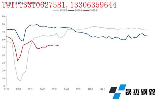 對于6月份行情,筆者認為彩涂板卷原料成本與5月份相比依舊有一定下跌空間。生產方面,上海正式解封,廊坊疫情也逐步得到控制,運輸方面相較5月份也有一定改善,產能利用率或繼續回升,但受限于需求影響,短期也難以達到去年同期水平,預計6月份彩涂板卷產能利用率在58-60%水平。