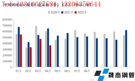 5月份消費端并沒有明顯的起色,因此在訂單上面并沒有太多的增加。成本方面,5月份原料熱軋價格雖然下行,但是今年運輸及天然氣成本上升,加工成本較往年增加。在產能利用率相對較低的情況下,企業的邊際效益減少。成本方面,5月份邯邢熱卷結算價格4940元/噸,較上月下降390元/噸,唐山冷軋基料結算價格集中在4920-4940元/噸。而在彩涂銷售這塊,客戶反饋訂單量依舊較少,生產難以完全飽和,因此從整體情況看,生產企業利潤微薄。四、4月份出口月環比年同比雙雙下降
