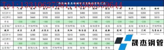 截至5月31日,現全國24個主要城市1.0mm冷軋板卷均價為5434元/噸,5月份累計下跌224元/噸;分城市來看,上海1.0mm寶鋼青山卷價為5420元/噸,5月份累計下跌230元/噸,天津1.0mm鞍鋼天鐵卷價為5280元/噸,5月份累計下跌270元/噸,廣州1.0mm鞍鋼卷價為5250元/噸,5月份累積下跌230元/噸。5月份主要城市均呈現價格大幅下跌。