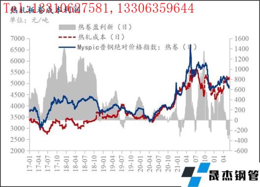 截止至4月29日,據測算熱軋生產成本為5255.08元/噸,較上月增加146.17元/噸,熱卷價格指數為4869.56元/噸,月環比下跌176.74元/噸,熱軋盈利為-385.5元/噸,較上周減少90.5元/噸。