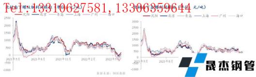 從價(jià)格變化來看,華南區(qū)域受汛期影響、價(jià)格表現(xiàn)相對(duì)偏弱,上海受疫情大規(guī)模封控影響、資源流動(dòng)性低,在價(jià)格下跌階段表現(xiàn)出了較強(qiáng)的抗跌性,北京則因?yàn)椴糠謪^(qū)域疫情封控影響,資源出現(xiàn)了區(qū)域內(nèi)不平衡流動(dòng),導(dǎo)致可流動(dòng)資源跟隨性下跌后帶動(dòng)市場價(jià)格整體趨弱運(yùn)行。但不管從何角度來看,5月份無縫厚壁鋼管廠家利潤或受售價(jià)大幅下跌影響出現(xiàn)較大幅度萎縮。