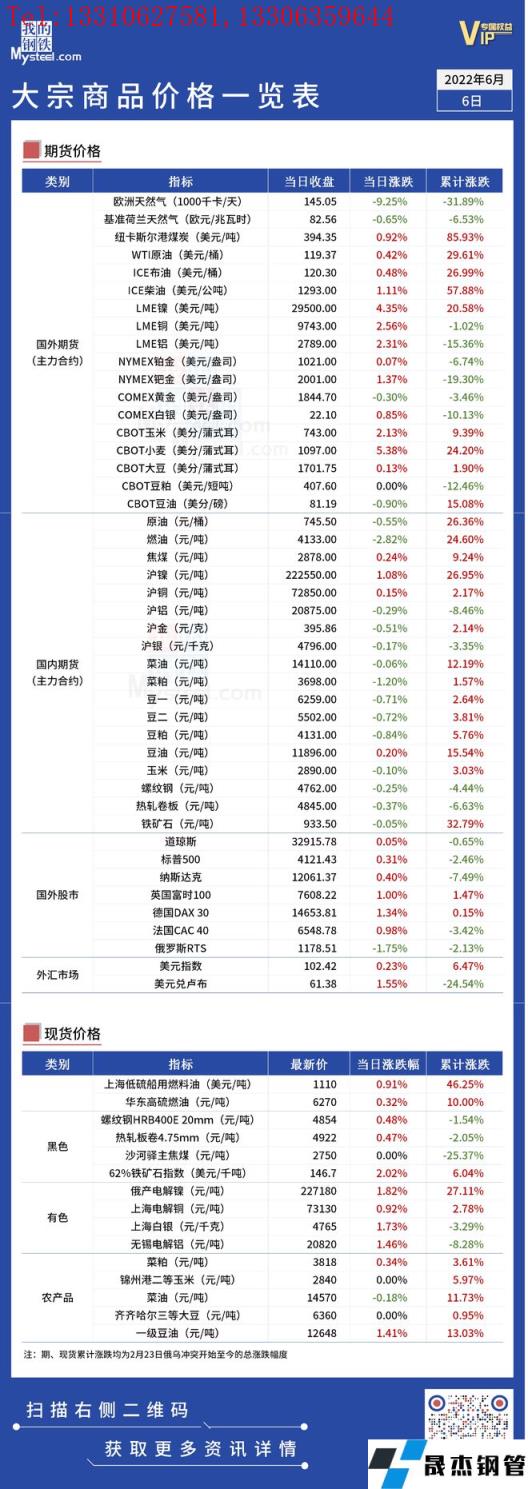 免責(zé)聲明:本網(wǎng)站(山東聊城晟杰無(wú)縫鋼管廠www.subnucleon.com)刊載的“俄烏局勢(shì)丨大宗商品價(jià)格一覽表(6月6日)”等均源于網(wǎng)絡(luò),版權(quán)歸原作者所有,且僅代表原作者觀點(diǎn),本文所載信息僅供參考。轉(zhuǎn)載僅為學(xué)習(xí)與交流之目的,如無(wú)意中侵犯您的合法權(quán)益,請(qǐng)及時(shí)聯(lián)系刪除。本網(wǎng)站刊登此篇文章并不意味著本站贊同其觀點(diǎn)或證實(shí)其內(nèi)容的真實(shí)性,我們不對(duì)其科學(xué)性、嚴(yán)肅性等作任何形式的保證。如果侵犯了您的版權(quán),請(qǐng)盡快聯(lián)系我們予以撤銷(xiāo),謝謝合作!