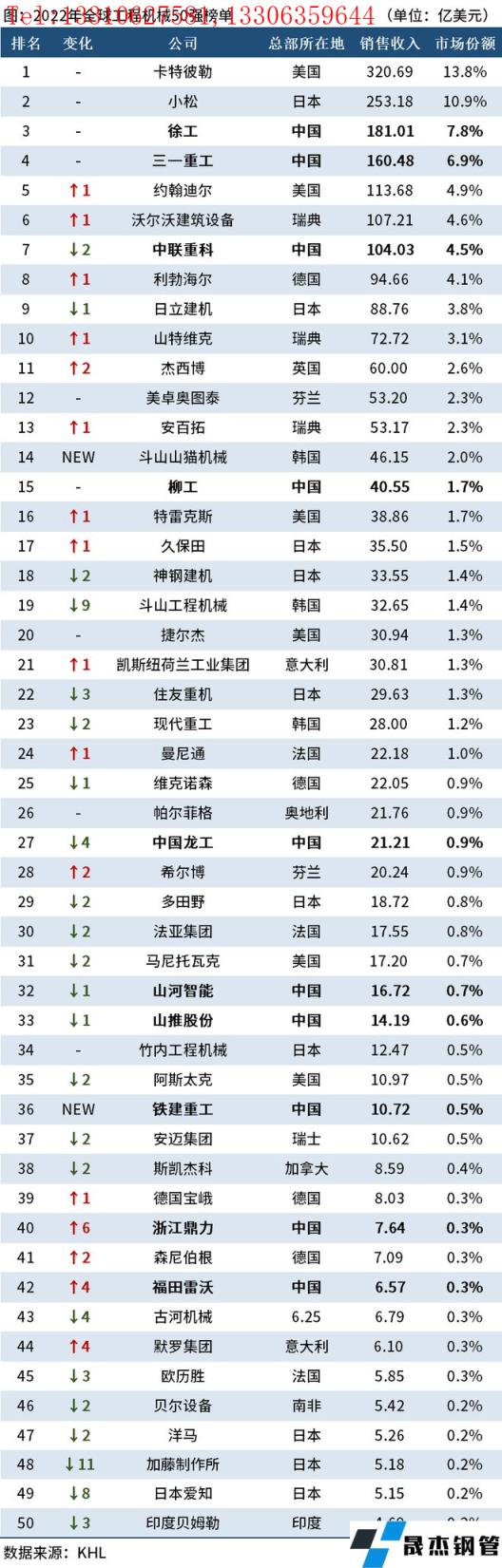 免責聲明:本網站(山東聊城晟杰無縫鋼管廠www.subnucleon.com)刊載的“2022全球工程機械50強榜單出爐,企業銷售額增超20%”等均源于網絡,版權歸原作者所有,且僅代表原作者觀點,本文所載信息僅供參考。轉載僅為學習與交流之目的,如無意中侵犯您的合法權益,請及時聯系刪除。本網站刊登此篇文章并不意味著本站贊同其觀點或證實其內容的真實性,我們不對其科學性、嚴肅性等作任何形式的保證。如果侵犯了您的版權,請盡快聯系我們予以撤銷,謝謝合作!
