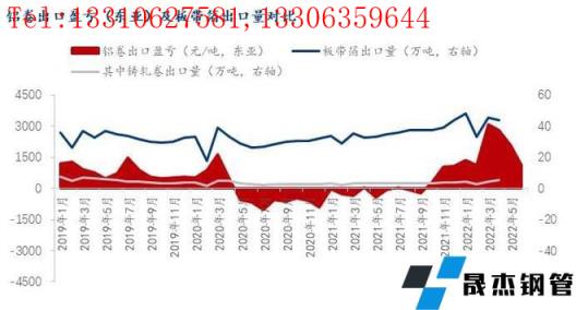 而在板帶箔出口方面,我們從下圖數(shù)據(jù)可以看到,在鋁卷出口利潤(rùn)為負(fù)的時(shí)候,板帶箔仍維持較高水平的出口量。