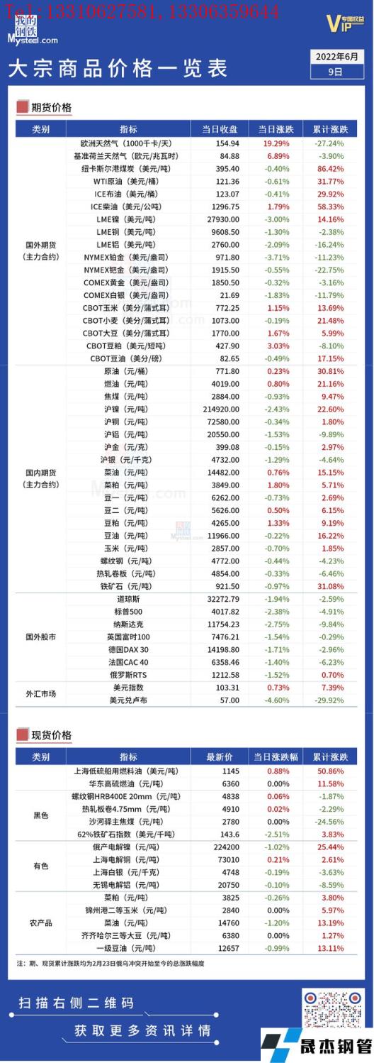 免責聲明:本網站(山東聊城晟杰無縫鋼管廠www.subnucleon.com)刊載的“俄烏局勢丨大宗商品價格一覽表(6月9日)”等均源于網絡,版權歸原作者所有,且僅代表原作者觀點,本文所載信息僅供參考。轉載僅為學習與交流之目的,如無意中侵犯您的合法權益,請及時聯系刪除。本網站刊登此篇文章并不意味著本站贊同其觀點或證實其內容的真實性,我們不對其科學性、嚴肅性等作任何形式的保證。如果侵犯了您的版權,請盡快聯系我們予以撤銷,謝謝合作!