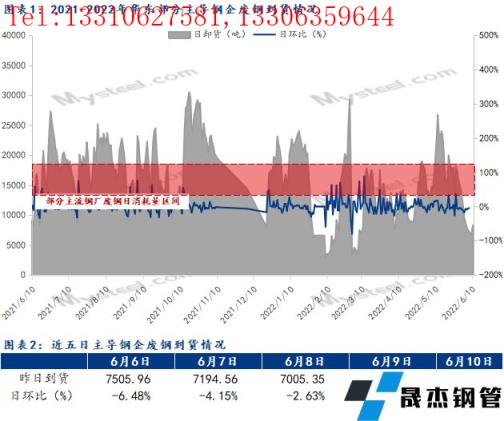 截止發稿,6月10日統計華東主導鋼企廢鋼到貨昨卸8304.23噸,較前一日增加19.39%。日均到貨普遍低于日耗。結合上述消耗情況,可見多數無縫厚壁鋼管廠家暫未受此消息影響而計劃降低庫存,反而部分無縫厚壁鋼管廠家庫存偏低,有補庫需求。