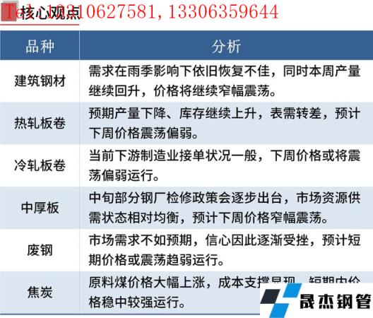 建筑厚壁無縫鋼管:6月10日,全國31個主要城市20mm三級抗震螺紋鋼均價4821元/噸,較上個交易日下跌17元/噸。短期來看,目前市場需求在雨季影響下依舊恢復(fù)不佳,同時本周產(chǎn)量繼續(xù)回升,高爐產(chǎn)能維持,供需仍然呈現(xiàn)雙弱格局。因此在下游需求難以回暖的狀態(tài)下,預(yù)計下周國內(nèi)建筑厚壁無縫鋼管價格或?qū)⒗^續(xù)窄幅震蕩為主。