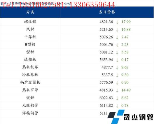 6月10日普鋼絕對價格指數(shù)變化:綜合指數(shù)5058.29,下跌12.4;螺紋鋼指數(shù)4821.36,下跌17.99;線材指數(shù)5213.65,下跌16.88;熱軋板卷指數(shù)4877.7,下跌9.63;冷軋板卷指數(shù)5337.5,下跌9.3;中厚板指數(shù)5076.26,下跌7.47。