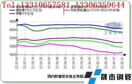 5月國內焊管、鍍鋅管價格快速探底。據云商平臺監測數據顯示,截至5月31日,全國4寸(3.75)國標焊管平均價格5237元,比上月同期下跌267元,全國4寸(3.75)鍍鋅管平均價格6092元,比上月同期下跌204元;全國50*50*2.5方管平均價格5269元,比上月同期下跌245元;全國219*6螺旋管平均價格5599元,比上月同期下跌190元;管價跌勢擴大,與上游之間價差收窄。