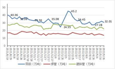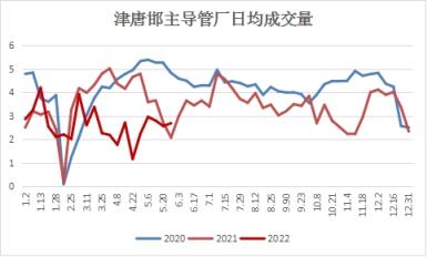 網統計唐山地區熱軋帶鋼生產企業15家,總計29條帶鋼軋線, 5月內平均產能利用率57.81%,較上月同期增長2.01個百分點,增長率快速下降,較去年農歷同期下降14.23個百分點。同時山東、河北、山西等地發文推進無縫鋼管行業超低排放改造,不過中鋼協數據顯示,截至2022年4月底,已經有40家無縫鋼管企業完成了超低排放改造和評估監測,且以往年經驗,大多以壓減建筑無縫鋼管 厚壁鋼管產量為主,數據上反饋6月熱軋類減量預期不大。