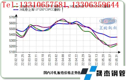 云商平臺監(jiān)測數(shù)據(jù)顯示,截至5月31日,全國1.0mm冷軋市場均價為5390元(噸價,下同),比3月末下跌227元。主導城市上海唐鋼1.0mm冷軋卷市場價格為5560元,比4月末上漲40元;北京首鋼1.0mm冷軋卷5430元,比3月末下調(diào)300元;天津唐鋼1.0mm冷軋大卷5250元,比3月末下跌290元。