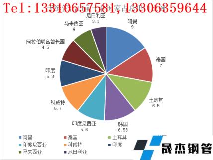 無縫管進口前二位的地區是阿曼和泰國,分別占當月進口總量比重為9.2%、7.15%。其中進口比重較大的仍是石油天然氣鉆探無縫管和石油天然氣無縫套管,分別占當月進口量的28.8%和23.1%,其中石油天然氣鉆探無縫管進口比重較上月有小幅下降,這兩種無縫管占當月進口量的51.9%。