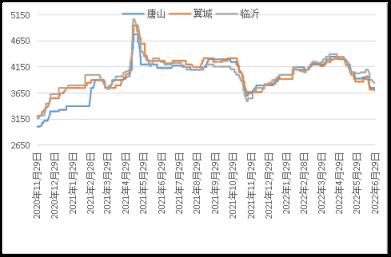 據云商平臺監(jiān)測數(shù)據顯示,截至6月30日,煉鋼生鐵天津地區(qū)報價3670元(噸價,下同),較月初跌240元;唐山地區(qū)報價3700元,較月初跌230元;翼城地區(qū)報價3720元,較月初跌150元;臨沂地區(qū)報價3850元,較月初跌180元(詳見圖2)。