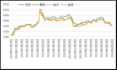 據云商平臺監(jiān)測數(shù)據顯示,截至6月30日,鑄造生鐵天津地區(qū)報價4250元,較月初跌150元;武安地區(qū)報價4150元,較月初跌220元;翼城地區(qū)報價4150元,較月初跌150元;上海地區(qū)報價4500元,較月初跌150元;臨沂地區(qū)報價4200元,較月初跌200元(詳見圖3)。