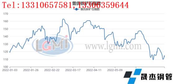 6月份以來,伴隨著國內厚壁鋼管價格的大幅下挫,進口鐵礦石市場也出現了明顯的下跌行情,截至7月5日,普氏鐵礦石指數跌到了114.3點,較6月初的高點(147.3點)下跌了22.4%,也創下了年內的最大單月跌幅(詳見圖1)。